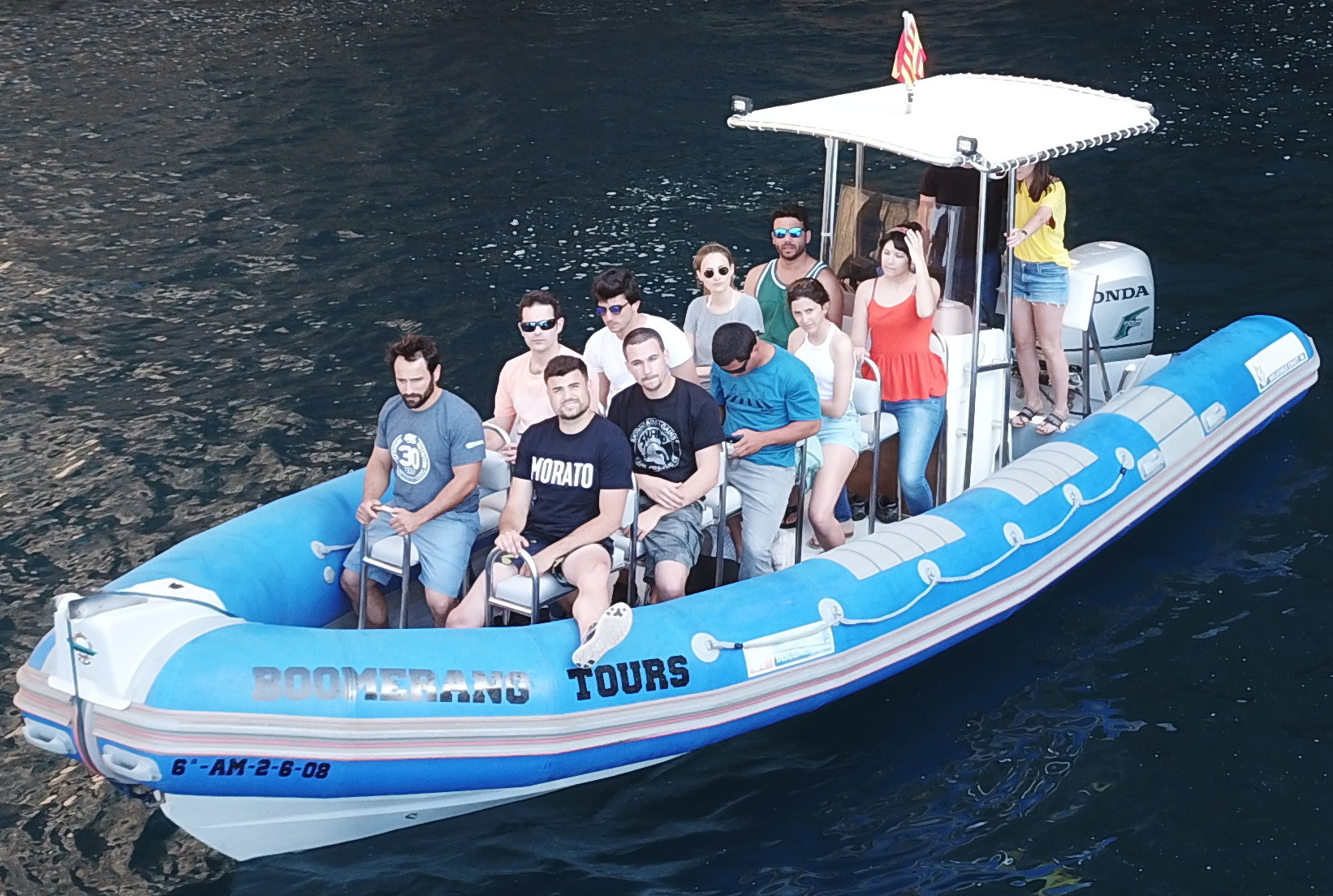 Es una embarcación semirígida de 8 metros de eslora con capacidad para 10 pasajeros + patrón y marinero acomodados en unos asientos en forma de potro. La velocidad de crucero se sitúa entre 20-30 nudos llegando hasta la velocidad máxima de 40 nudos. Esta dotada de un motor Honda de 200 hp v6 que te hará cabalgar por las olas más emocionantes de nuestra costa. Además la embarcación dispone de equipo de música y de focos led para el interior de las cuevas.